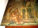 When you look to the source of the water from which the people drink you see a waterfall that is rendered in the style of Chinese and Japanese paintings. This is deliberate. Is Stanton recognizing the Asian roots of Native Americans? Yes. He is not re-routing these roots to men of the cross as Oscar claims. I think he came to demonstrate at the Santa Monica City Hall, where he, or someone pointed out Stanton’s mural, and, how it could be used to keep funding for Oscar’s cause.