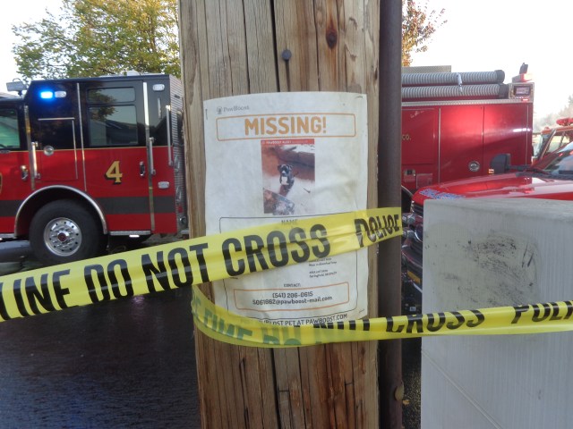 Until around 4:30 A.M. last night, the only sign of trouble was this sign posted on a telephone pole across the street from mayhem and insanity. Is this lost dog – found?