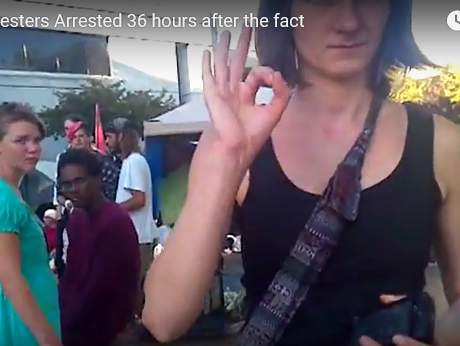 I believe Zachery is lying. He got arrested with Gwendolyn, as did a sixteen year old minor whose mother was pissed because these OCCUPY anarchists did not call the police – knowing she was a runaway. This minor was in the presence of Ambrose Stormrider Holtham-Keathley, who later became Belle Burch’s lover, and Terra Rene Williams, who helped Gwendolyn accuse me of being a deviant stalker of women. That’s half-naked Stormrider hugging and cupping the breast of the mother who brought her children to the square to listen to Ken read. Meanwhile, near Burns;