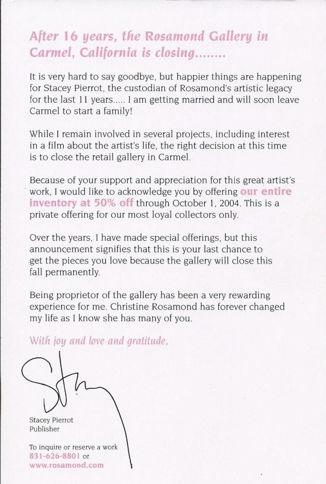 Yesterday, while looking for my play ‘Daughter Dead’ I found this card sent out by Stacey Pierrot, who was sold the Rosamond Estate for ten years. At the end of this contract, the entirety of the estate goes to my two nieces, Shannon Rosamond, and Drew Benton. This is my kin. Pierrot is not related to them. She is not, and never was the Custodian of these human beings that are found in our amazing family tree – I am the custodian of. Because Mark Presco resigned and disappeared himself from our family, I am now the head of our family. This includes Heather and Tyler Hanson.