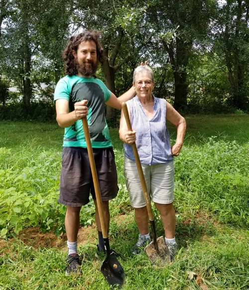 Peter and me working the taters in one of his yard gardens outside Huntsville Alabama..he and Rainbow have a lot of gardens in progress. — with Peter Grotticelli.