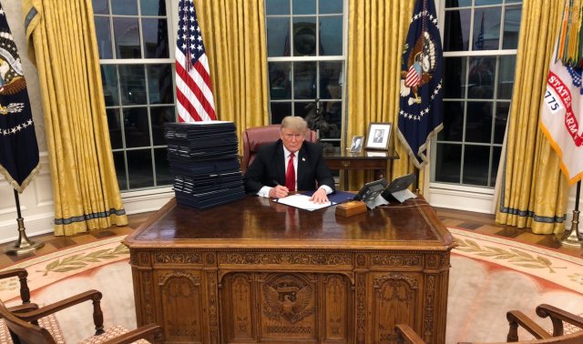 - On Friday night, the president tweeted a picture of himself and a stack of folders, presumably stocked with bills ready for him to sign.