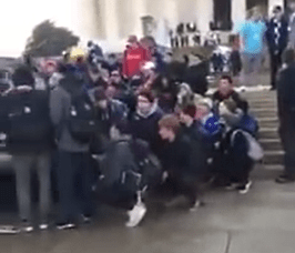 A CC student says he got permission to let go a WAR CHANT. This should have never been done while wearing MAGA caps. These RED caps are WAR FLAGS. thanks to the President of the United States, who loves DIVIDING our nation, and building walls between people. The Trumpite Tribe is to blame. This is why TRIBAL PEOPLE react to other tribes who appear HOSTILE. The CC huddled, knelt, and prayed to Jesus to give them supernatural strength.