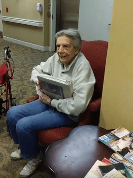 I went and looked, and there I am petting our beloved, Nacho, and, hugging a Senior. It is ordained!