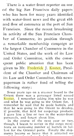 I hereby Copyright the article about Frederick J. Koster and his brothers that was written by Charles J. Edwards and published in the Argonaut on December 30, 1916.