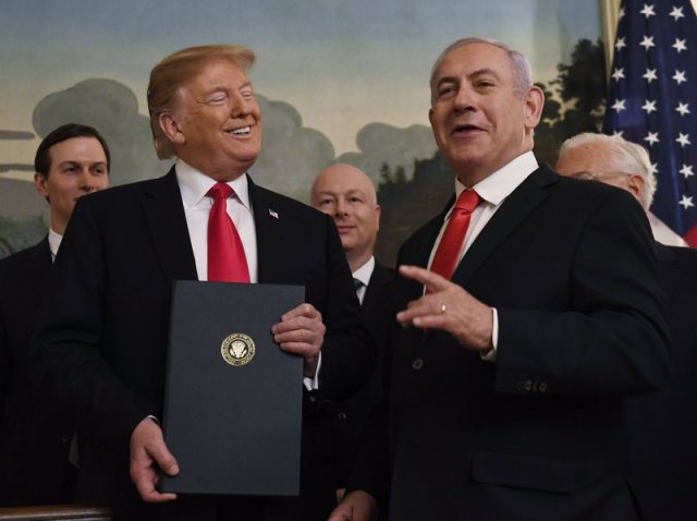 Standing alongside Israeli Prime Minister Benjamin Netanyahu at the White House, Trump made formal a move he announced in a tweet last week. The president said it was time for the U.S. to take the step after 52 years of Israeli control of the strategic highlands on the border with Syria.