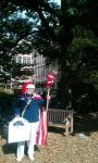 While visiting the place where my homeless friend, Hatoon, slept – in front of the UofO library, and Arab student asked if he could be in a photo with me. The Arab Spring, and the Liberty Tree Rebellion – meet!