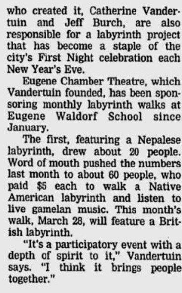 Belle’s mother was a Story Teller. When I went to a OCCUPY meeting dressed as Santa Claus, I came as The Story Teller. I am the Last Member of OCCUPY I shut the door behind me. What s a “Nepalese Labyrinth”?