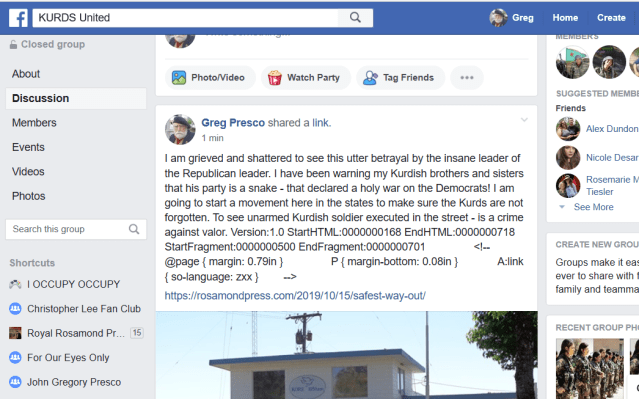 I am grieved and shattered to see this utter betrayal by the insane leader of the Republican leader. I have been warning my Kurdish brothers and sisters that his party is a snake – that declared a holy war on the Democrats! I am going to start a movement here in the states to make sure the Kurds are not forgotten. To see unarmed Kurdish soldier executed in the street – is a crime against valor.