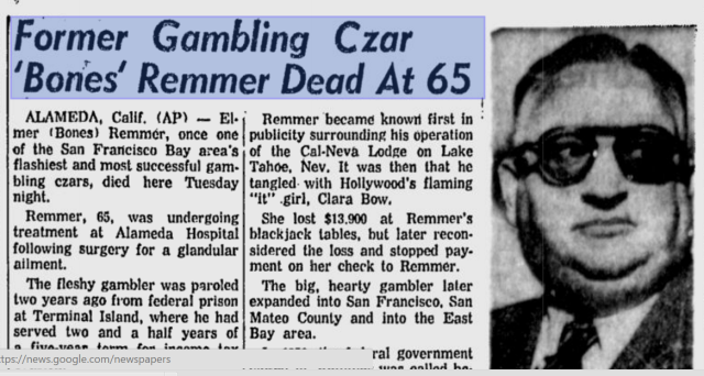 Lanza became well connected throughout the country with other mob figures, as well in Las Vegas by his friend William “Bones” Remmer. Remmer was Lanza’s link to Las Vegas and started their own casino skim. He became close friends with Joseph Civello, the boss of the Dallas crime family and to Joe Cerrito, the boss of the San Jose crime family.