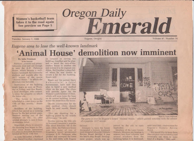I can not find the name of the janitor in Animal played by James Whetstine. I would make a sitcom around this guy. I see a Jazzy Archie Bunker who lives near the campus and has a great collection of Jazz Records. I lived a block from the campus, and every year I saw the riots inspired by Animal House. Parents would unload the kids, stuff, then head back home. This is when the plotting began. I saw a little co-ed running down the street with a No Parking sign that got yanked up. The cement was still attached. She had superhuman strength as she disappeared into our building. She had a trophy-novelty.