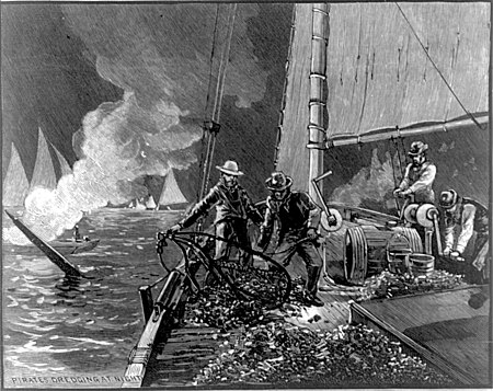 The term “oyster pirate” appeared in several literary works by Jack London. London usually used the term without explanation (“I wanted to be where the winds of adventure blew. And the winds of adventure blew the oyster pirate sloops up and down San Francisco Bay”).[1] Writers about London also use the term without explanation (“he was a sailor, seal-hunter, tramp, fish warden, oyster pirate, cannery worker, jailbird, boxer, and gold digger”[2]), as if everyone knew the meaning of the term.