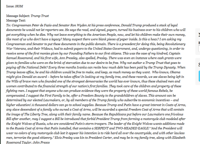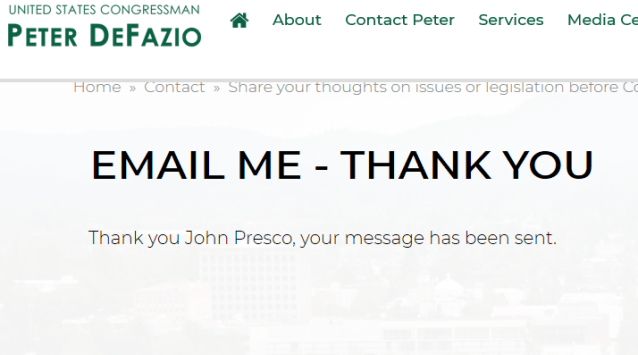 At 4:A.M. I sent this message to my Congressman, Peter DeFazio.