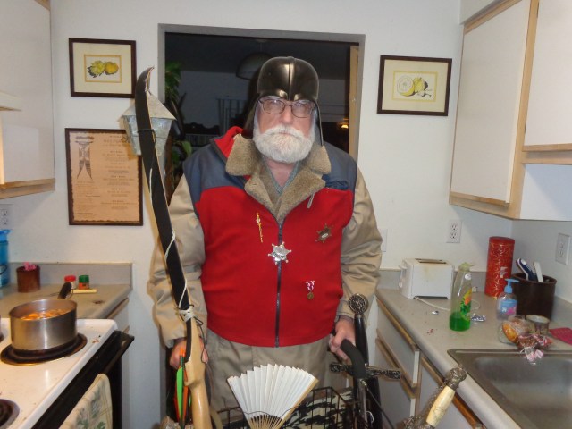 “This poor sap had no idea what he was getting himself into when he ran against former Slug Queen, Emily Semple. The election of this queen was so Dickinish. Charles was the master of how the common people ar rewarded – and not rewarded! Never the less, Sean is a Master of Kabuki. He carries a gun as his Samurai as he enters the store. His She-male walks behind him. He grabs a beer out of the cooler, and sets the trap. He has performed this piece before. The throwing down of the beer bottle on the floor is so classic.”