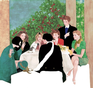 I too was taken in by this beautiful blonde who I believe is the blonde on the far right in Rosamond’s painting ‘Story Teller 2″ When I saw this painting on the wall in the house Christine lived in, I had an epiphany. I believe Sande and her husband were at the meeting I was kept away from on March 27, 1994. I believe my mother was at that meeting because she had come up from LA to celebrate Christine’s first sober birthday in AA. I believe the man who gave me a dirty look at the funeral reception at the gallery, was Sande Green’s husband, who was also at that…