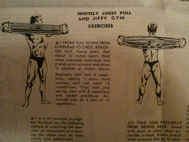 Then, here he come again, down the hall that leads to the kitchen. This was not an anomaly. Again I felt Bill’s hard look. The light from the T.V. was blocked. I heard faint grunting. Now I got it. What Bill was waiting for was me to break out in hysterical laughter. I could tell he was proud of me after the third pass. Then, Mr. Arnold got up off the floor, and grabbed this exercise device with two red handles, and stood there flexing his muscles, looking dead at us.