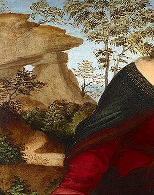 Below is the path I took to get to the rock at McLure’s Beach. Note the path in Leonardo’s painting. Note the portal in the rock above the cave. After falling on the zenith of the rock, my two friends had to help me down. I was bleeding profusely from a deep gash in the palm of my hand. They carried me over the land bridge that the sun sets in the back of, like the eye of God, whom I saw on the other side of this rock, sitting on a rock, with one sandal in the sea, and the other, on the sand. He had his back to me.