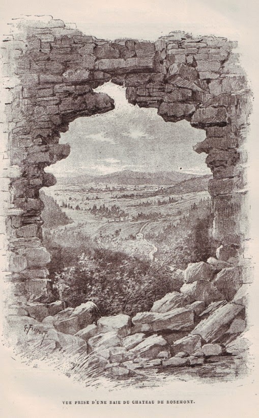 Dès la période gallo-romaine, une voie reliant le pays des Lingons à l’ Alsace passait au pied des Vosges. From the Gallo-Roman period, a path linking the country of the Lingons to Alsace passed at the foot of the Vosges. Un diverticule reliant cette voie à la vallée de la Moselle aurait passé par la vallée de Riervescemont et en particulier en son endroit le plus étroit, au pied d’un verrou glaciaire dominant le passage et la Rosemontoise , qui pourrait avoir été surmonté d’une tour de guet avant qu’y soit construit le château du Rosemont. A diverticulum connecting this route to the Moselle Valley would have passed through the Riervescemont valley and in particular at its narrowest point, at the foot of a glacial lock overlooking the pass and Rosemontoise , which could have been overcome by a watchtower before the castle of Rosemont is built there.