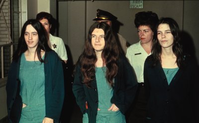 Manson family members and murder suspects Susan Atkins, Patricia Krenwinkle, and Leslie van Houton.
