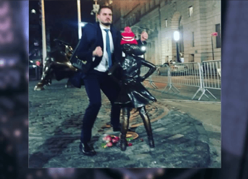 A social media post that appears to show a man performing an obscene act with the popular “Fearless Girl” statue on Wall Street has gone viral.