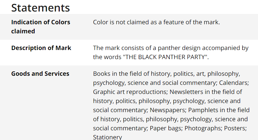I am investigating who owns the Black Panther trademark. Any information will be appreciated. It looks like Fredricka Newton does.