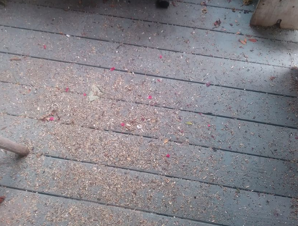 On Sunday night at 10 PM I heard Cheyl vacuuming the balcony. I thought she was sucking up the bird feces and seeds. In the morning I could not see the houses across the street. Then I saw the CONTAMINATION! She must have used the hose to blow this toxic matter towards my door. I called a service that helps Seniors and told them about the latest incident of harassment – and gaslighting!