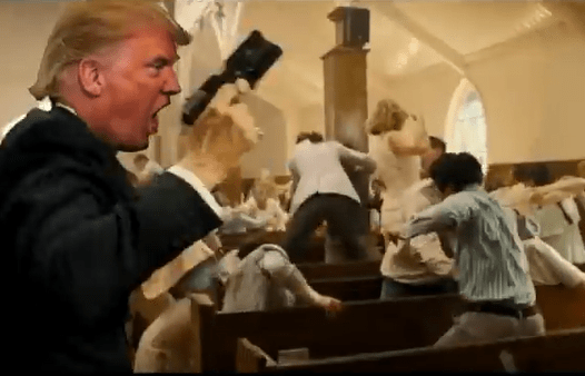 “Together! WE can destroy the world – so Jesus will come! The day the non-believers DIE a horrible death – is nigh! Destroy the Infidels! Be THE HOLY BOMB OF GOD!”