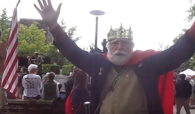There’s no telling how many lunatic evangelicals (who should be locked up) believe Donald Trump is the embodiment of King David. I’ve decided to throw my crown in the ring. I already announced I was the Anti-Christ at the Three Percenter gathering. I even walked around Springfield wearing my crown. My neighbors already said I’m certified crazy. But, do they believe Trump is crazy? I should conduct a pole. Maybe I will walk around my appartment complex, and make an announcement. Am I allowed to campaign on private property? Management allowed a Witch Hunt to take place without any penalty. How prophetic that the armed National Guard will be at our polling places tomorrow. Who saw this High Noon event coming? No mistake about it. Oregon has a prophet – and a king. Am I the embodiment of Melchizedek?