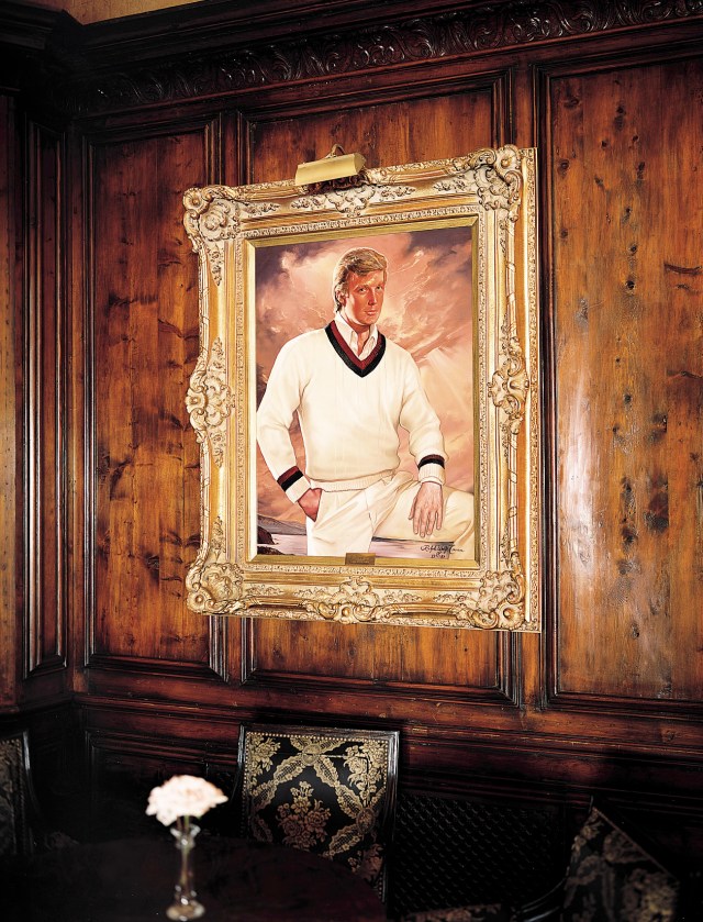 1989 portrait of real estate mogul Donald Trump hanging in room of his Mar-a-Lago estate.