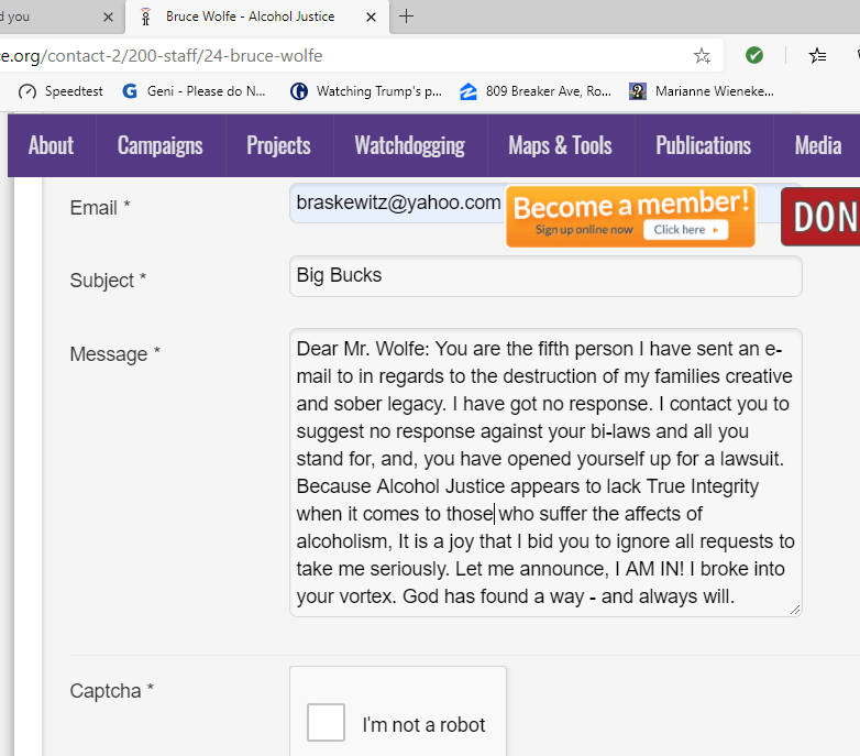 I am now going to send off another series of e-mails to the members of Alcohol Justice and inform then I no longer need their services. I will begin sending e-mails to the Buck foundation informing them their eternal vortex has been penetrated by the Spirit of William Buck – who I believe saw the light – and could care less about the brewing company his wealthy Buck family encouraged him to buy. Bill, had become enlightened. Like Zed in the movie Zardoz, he now sees the chariots of fire coming thru the Golden Gate Bridge. God….will find a way!