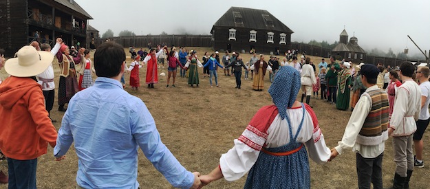The contestants for Miss Russian San Francisco 2017 pose with the founder Karina Zakharov, center in white skirt and perwinkle top.
