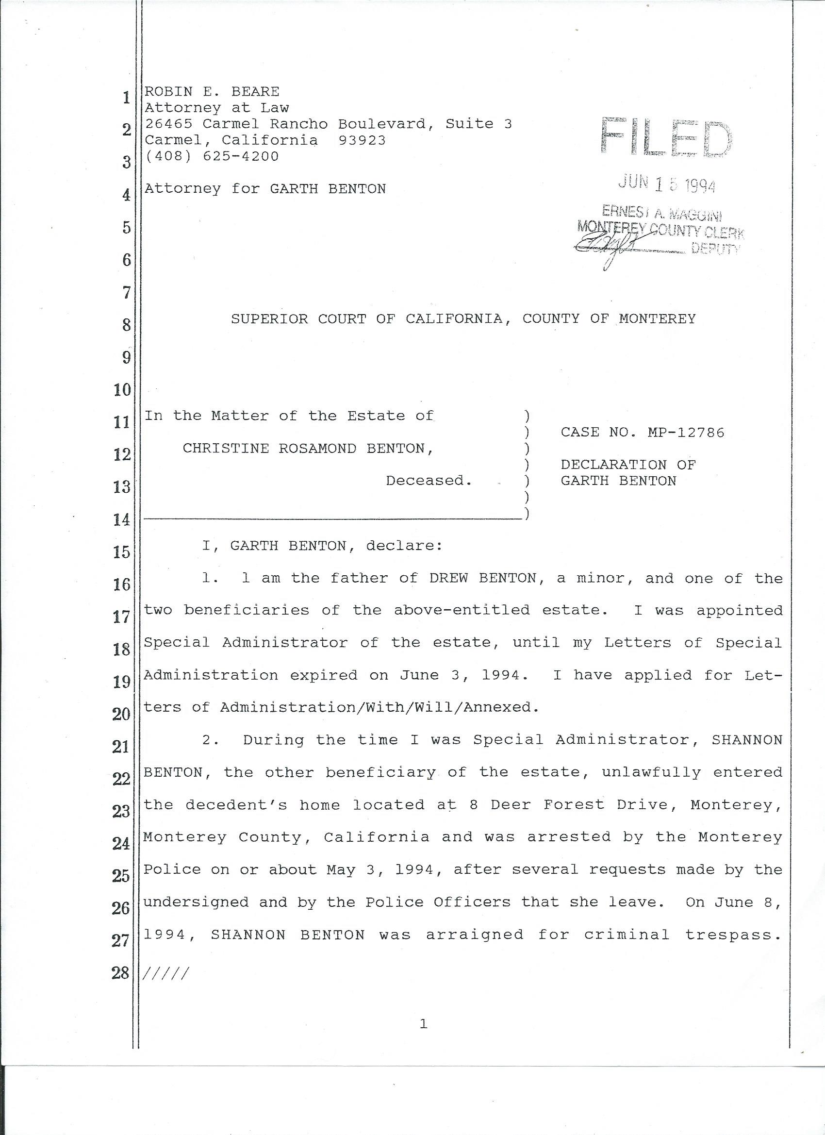 ““Over the specific argument of Ms. Beare, Judge Silver refused to appoint Mr. Chazen. Neither Ms. Beare nor Mr. Chazen disclosed to the court the very critical fact that Mr. Chazen has the largest single creditor’s claim against the estate and is a former business partner and business associate of Garth Benton who the court had removed as Special Administer just moments before.”