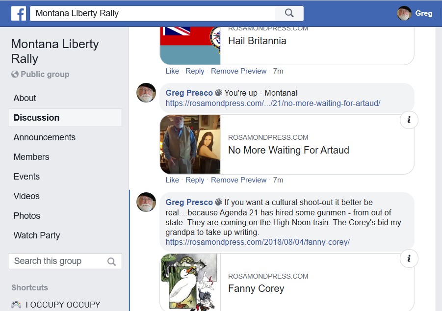 Here is when I began seeing the future – that was coming to Montana. To have literary confrontation with a five hundred pound ignorant Grunt Woman about whether I own the Right To Write, is utterly profound. Kim Haffner and her Stupid Girl Gang, wanted me out of here. Their Dude said I should be “Locked up!”