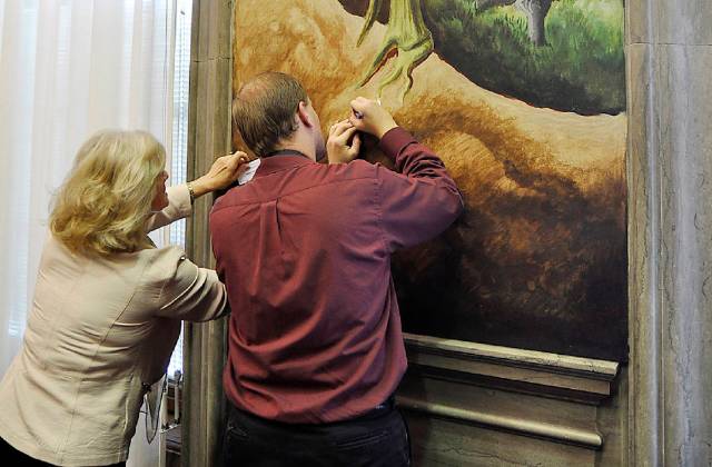 KANSAS CITY (AP) – The vice chairwoman of the Missouri Republican Party has apologized for using a Thomas Hart Benton mural as a writing surface in the state Capitol.