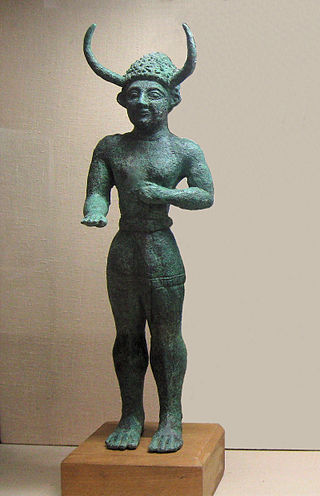 In Greek mythology, the Minotaur (/ˈmaɪnəˌtɔːr, ˈmɪnəˌtɔːr/MY-nə-TOR, MIN-ə-TOR,[1]US: /ˈmɪnəˌtɑːr, -oʊ-/MIN-ə-TAR, -oh-;[2]Ancient Greek: Μινώταυρος [miːnɔ̌ːtau̯ros]; in Latin as Minotaurus[miːnoːˈtau̯rʊs]) is a mythical creature portrayed in Classical times with the head and tail of a bull and the body of a man[3] or, as described by Roman poet Ovid, a being “part man and part bull”.[4] He dwelt at the center of the Labyrinth, which was an elaborate maze-like construction[5] designed by the architect Daedalus and his son Icarus, on the command of King Minos of Crete. The Minotaur was eventually killed by the Athenian hero Theseus.