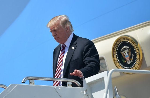 US President Donald Trump steps off Air Force One upon arrival at Palm Beach International in West Palm Beach, Florida on April 18, 2018. (Photo by MANDEL NGAN / AFP) (Photo credit should read MANDEL NGAN/AFP/Getty Images)