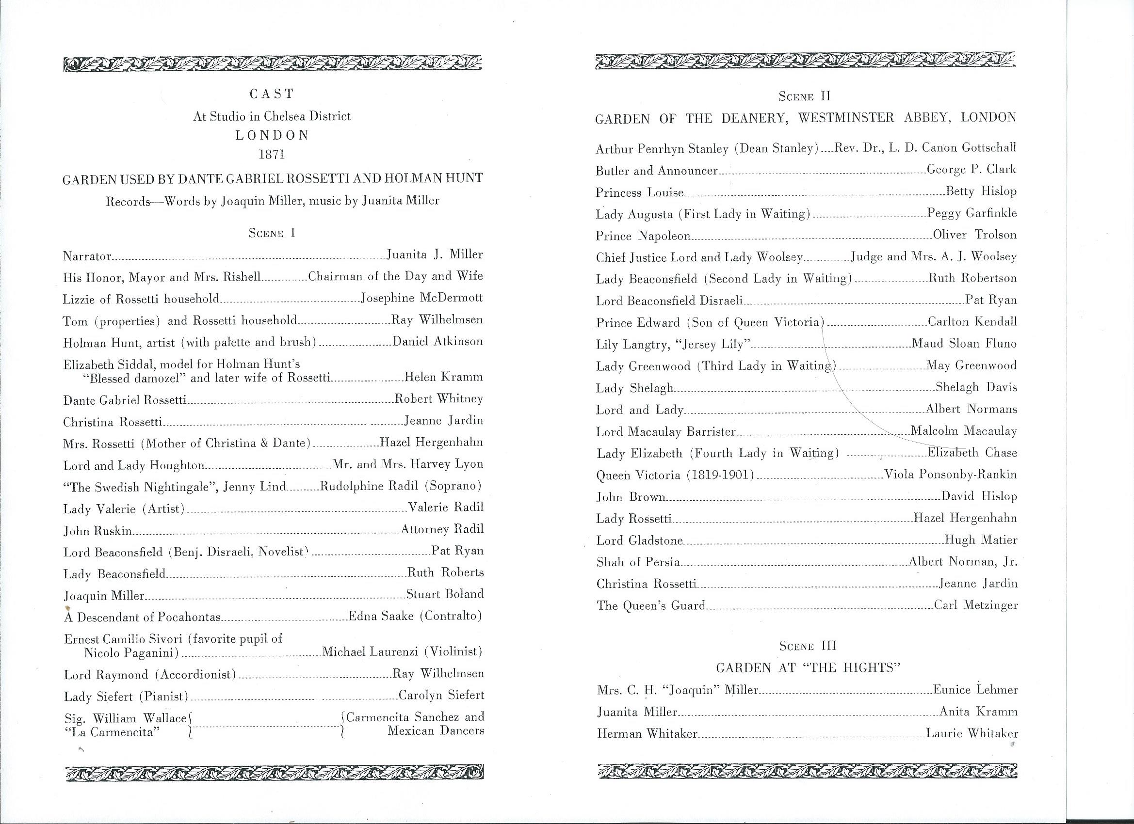 When we were children we would call Juanita Miller on the phone and pretend we were older so we could have The White Witch give us advice on our love life, that we invented. Joaquin Miller’s daughter titled herself the ‘White Witch’ and had involved her groom in a pagan ritual when they got married. She pretended she was dead, and, he brought her back to life. Sounds like Sleeping Beauty.