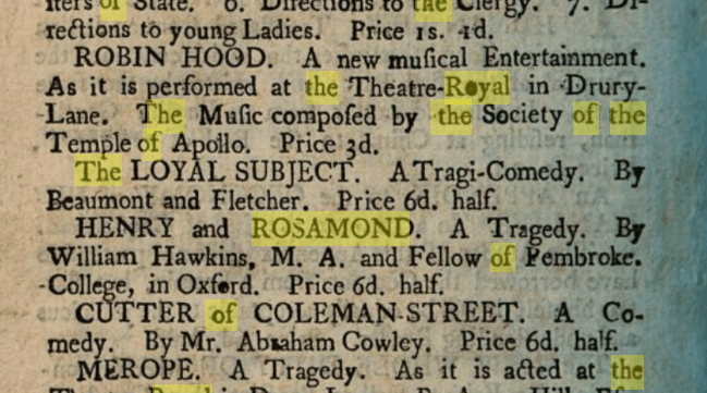 The action is drawn from the poem The Death of Rosamond by Thomas May. It concerns the story of Rosamond Clifford, mistress of Henry II of England. A jealous Queen Elinor poisons her but she recovers, and Henry repents of his sin.[6] While Queen Elinor regains her husband’s love by appealing to his sense of destiny, a comic subplot involves Sir Trusty and his wife Grideline, and the interplay between the two is similar to the ‘split-plot’ plays of John Dryden.[8]