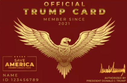 Trump, The King David of Evangelical Jews, wants his chosen ones to carry a RED STATE CARD with the image of a golden eagle. Never before in the history of any Democracy, has an ex-president made an attempt to designate True American Patriots, from Treacherous Americans, employing his personal official standard, in this case A GOLDEN EAGLE!