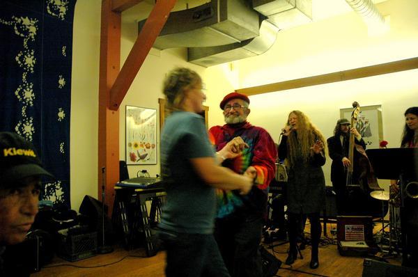 Kenny Reed, Rick Cobian, and myself, put on a Obama Inauguration at the One World Café when our great President won his first term in office. Kenny and I read poetry together in the basement of the Granary. There was a blank wall behind this amazing man and drummer, so we put one of my late sister’s print on it. We are beginning to fill in the empty spaces that were left behind.