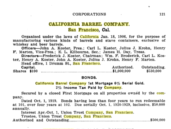 This morning I found an article about Bill Broderick and the California Barrel Company. What an historic account, that I have sent to the Mayor of San Francisco, and the Board of Supervisors. It’s all here, the elements that made San Francisco, and California – great!