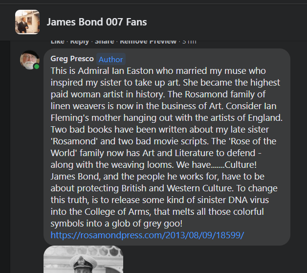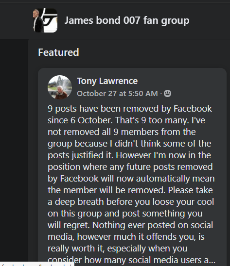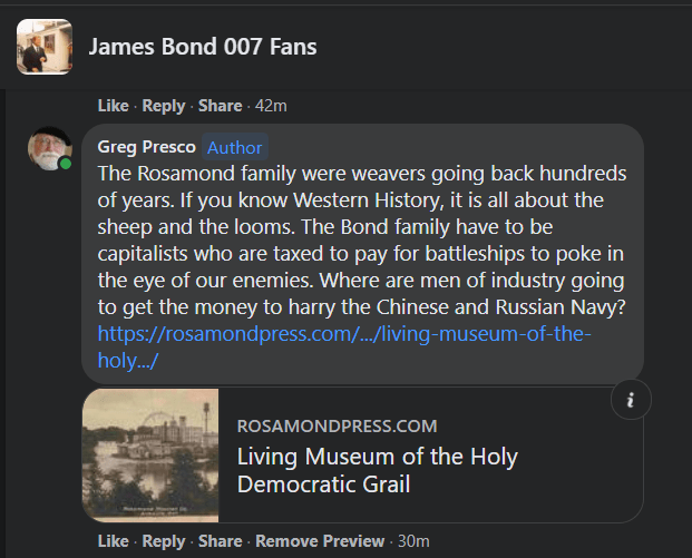 There is discussion about rebooting Bond. I offer my opinion on a Facebook group.