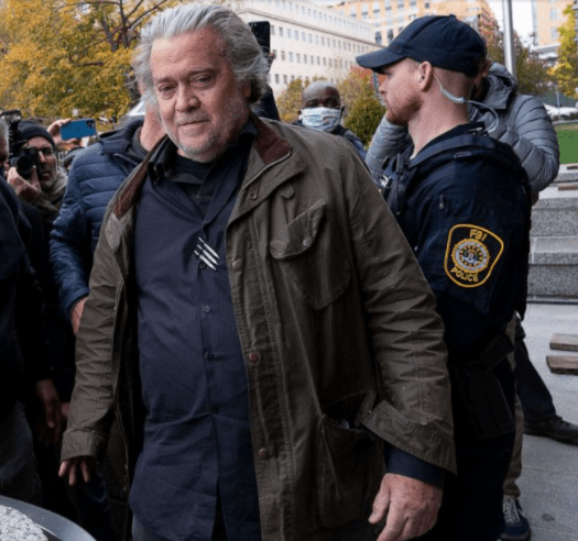 The corrosive and complicated impact of the 45th President’s poisoned legacy again threatens to blot out Biden’s efforts to look to the future on Monday, as Trump’s political guru Steve Bannon turned himself in at the FBI’s Washington field office after a federal grand jury indicted him last week for ignoring a subpoena from the House probe into Trump’s coup attempt. In remarks to camera, he told his supporters to stay focused, adding: “We’re taking down the Biden regime every day.” In an earlier indication of the Trump team’s willingness to embrace authoritarian rhetoric in open defiance of a democratic choice made by voters, Trump appeared to defend rioters, some who chanted “Hang Mike Pence,” after his vice president refused to throw the election. The comment was contained in audio of an interview conducted for a new book by Jonathan Karl released by ABC News.