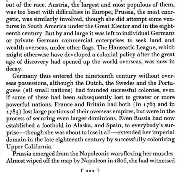 I fully agree with you that now is the moment, under the rule of our excellent King, who has a genuine German mind and heart, which beats aloud for everything that is noble, to lay the foundations of the greatness of our beautiful German Fatherland, in a political as well as in a commercial sense. England will always, as you say, see in us an awkward rival, but the time has arrived when we must act in a bold and independent way, and this can only happen if we are united as if we have a Navy and colonies. What a country Germany could become in such circumstances! She would be the equal of any other . . .