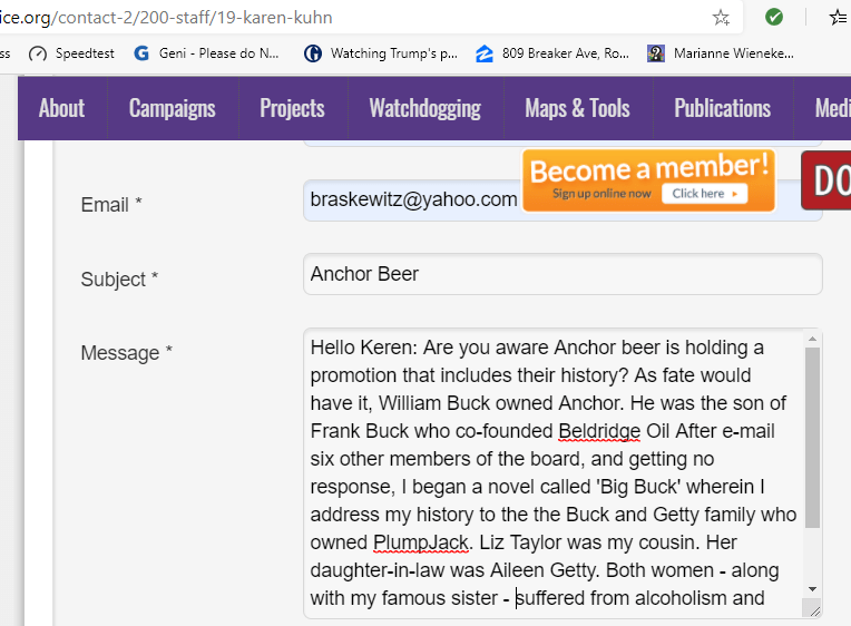I just noticed that Buck handles Welles Fargo, whose ex-Ceo is on the board of the Buck Foundation that includes Alcohol Justice that went after PlumpJack that Chazen and all the Gettys have stock in – including the Pelosi’s. This may be a huge conflict of interest. How many breweries and wineries have financial ties to The Stage Coach?