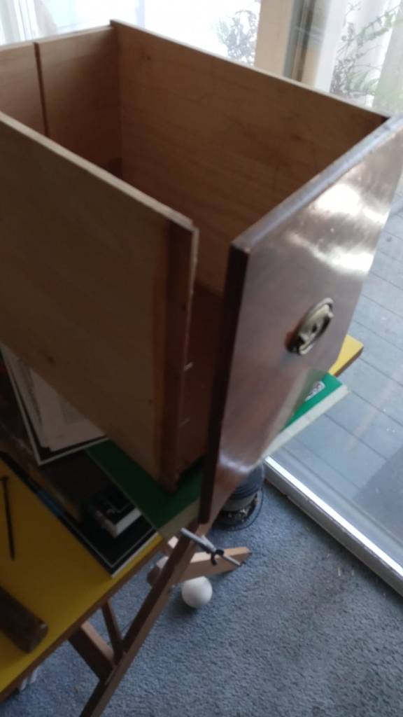 1:48 P.M. Yesterday I went looking for lost papers in my damaged drawer that broke apart years ago when I tried to open it. I ended up pulling up a chair and placing my waste bascket next to me. An hour later I have found the lost Stimic letter. I am saved!