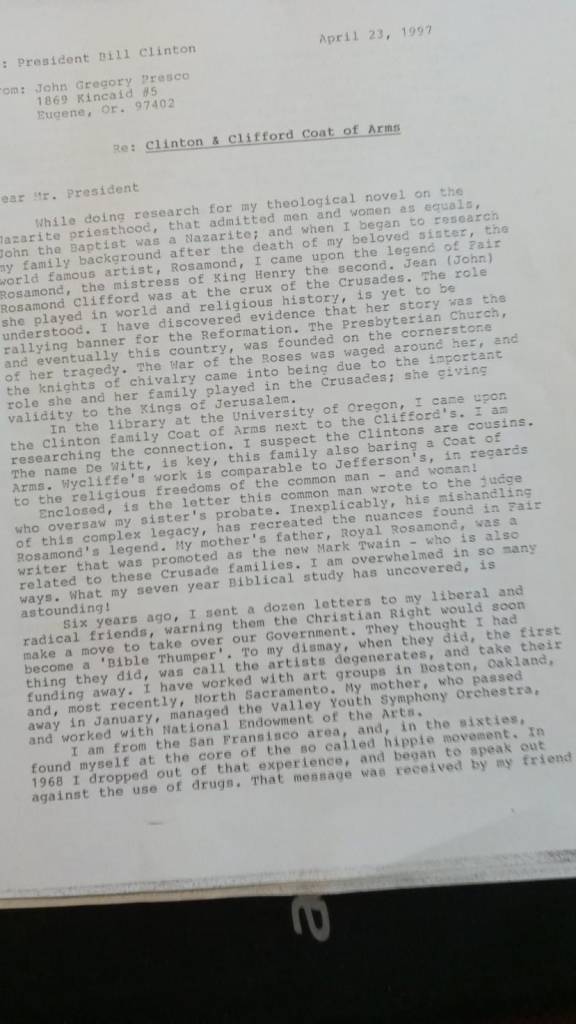 If it looks like I might get the nomination, my rivals will be wanting to get some dirt on me. It’s traditional. Here is my prophetic letter to President Clinton warning him about the rise of the Christian-right. It is in our National Archive.