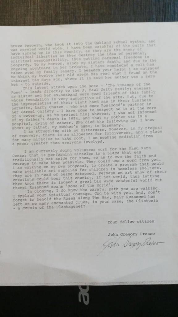 My dear Muse has been telling Tall Tales. She did not write me her long letter from Bruce Vesser’s ranch, on Vesser Road. On December 25, 2013, she wrote me from her home on Grand. I discovered the truth when I read the death certificate of her daughter, Kate, who was living on Grand when she died.