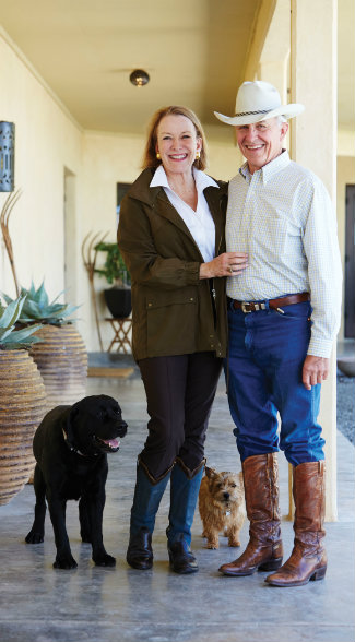 Although the couple has traveled near and far, they are most at home on their ranches, especially at hunting camp with family and friends.