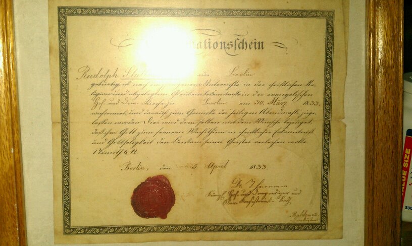 Here is the marriage certificate of Rudolph Stuttmeister who lost his mother at birth. The Stuttmeisters are San Francisco Pioneers. When I become Governor of the Great Bohemian State of California, I will pass a law making it illegal for anyone to sell, or attempt to sell, anyone’s family tree to outsiders, especially if they are hostile towards Heirs of said tree. My late sister, Victoria Presco, had this on her wall. Where is it?
